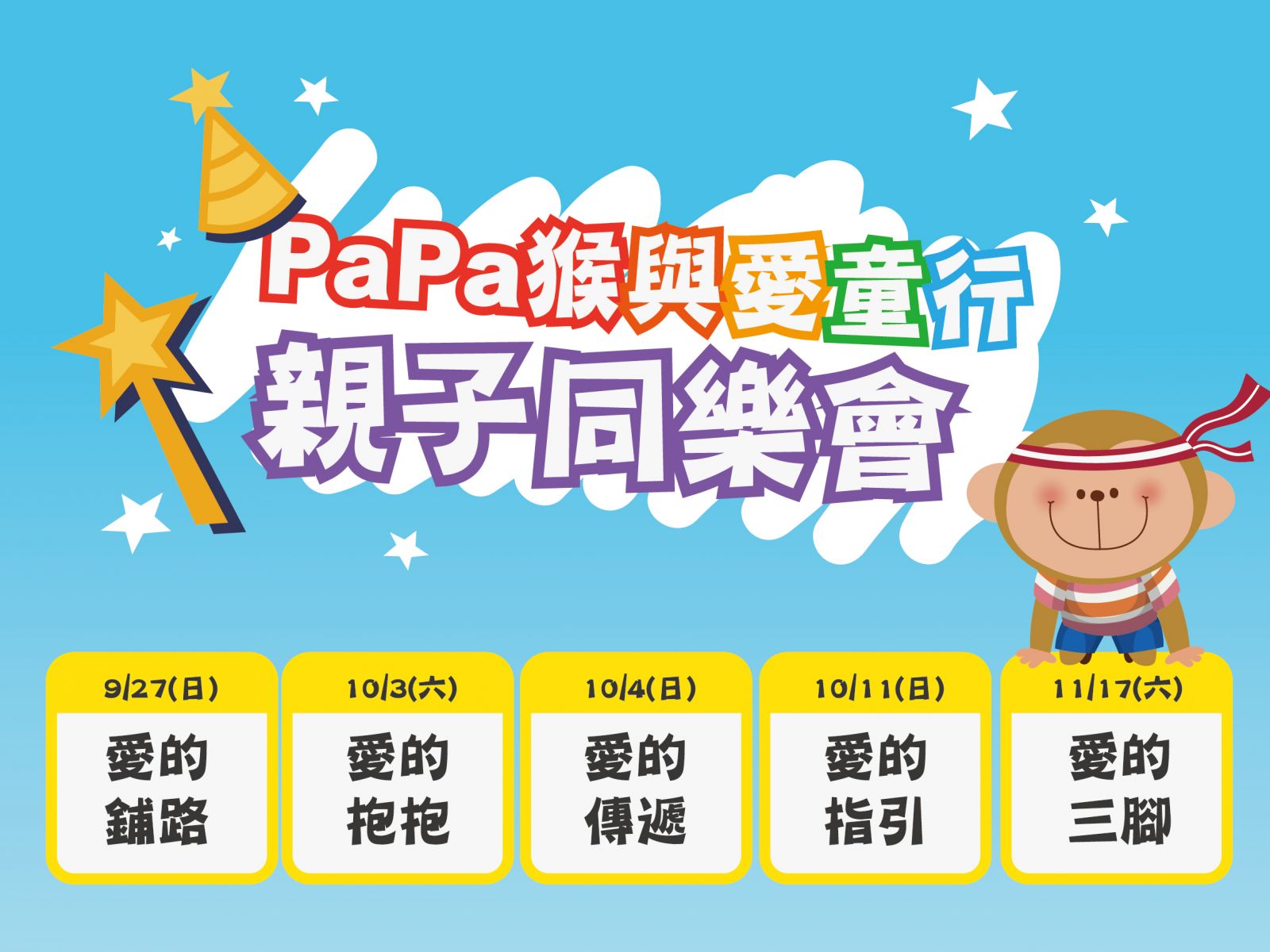 1.日期 : 09/27(日)、10/03(六) 、10/04(日) 、10/11(日)、10/17(六)